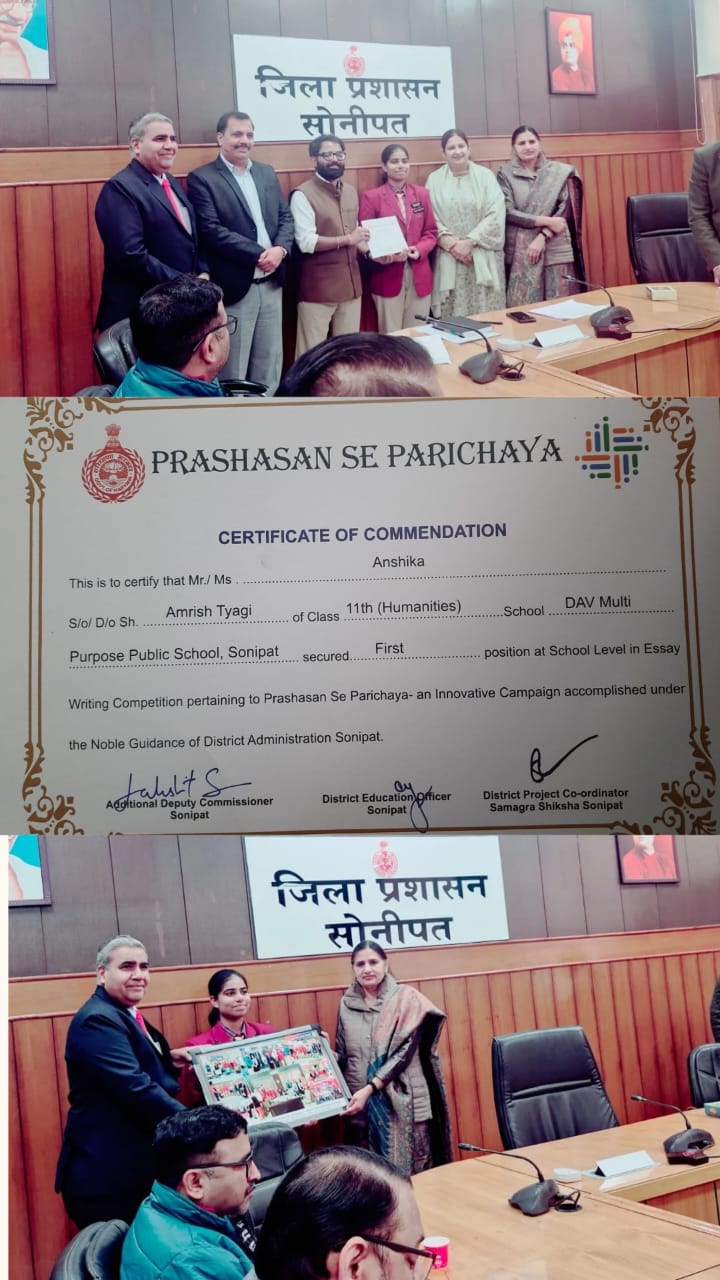 Our respected Principal cum ARO Sh. V.K. Mittal, along with Anshika, were felicitated by the District Administration, Sonipat, in the Felicitation Ceremony (Samman Samaroh).The function was graced by the Hon’ble ADC Sh. Lakshit Sareen, DEO Sh. Naveen Gulia, DPC Ms. Krishna Khatri and other dignitaries from the District Administration.